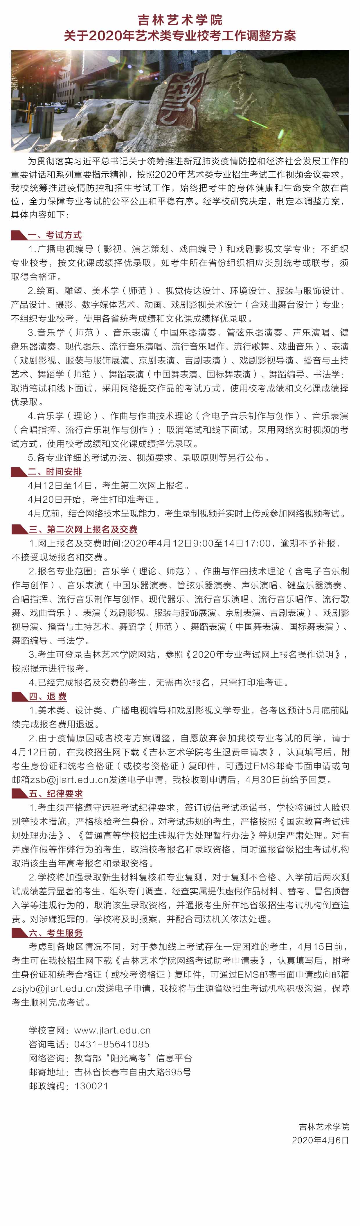 吉林艺术学院关于2020年艺术类专业校考工作调整方案