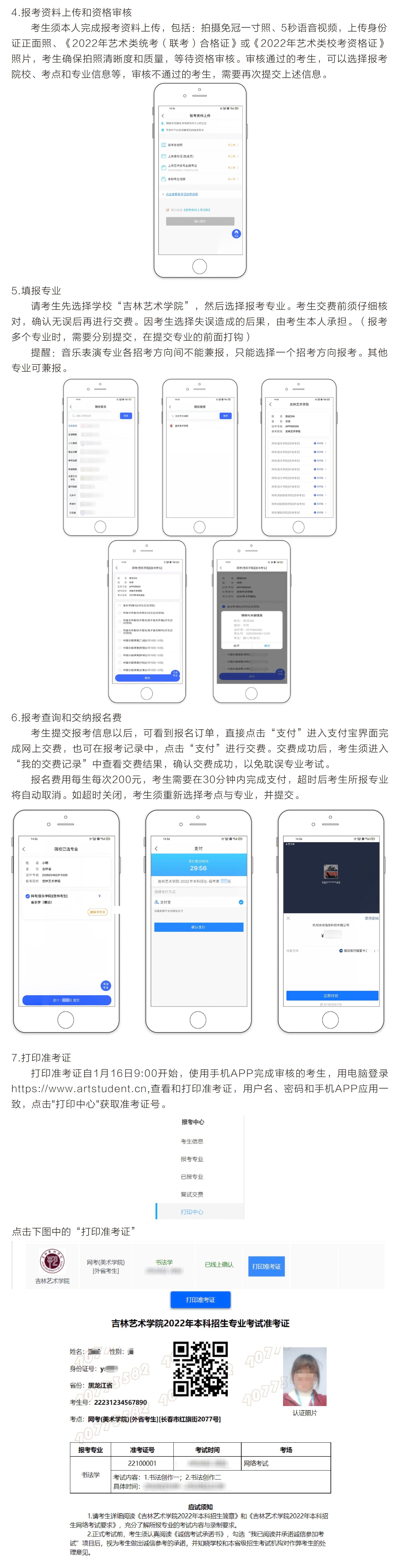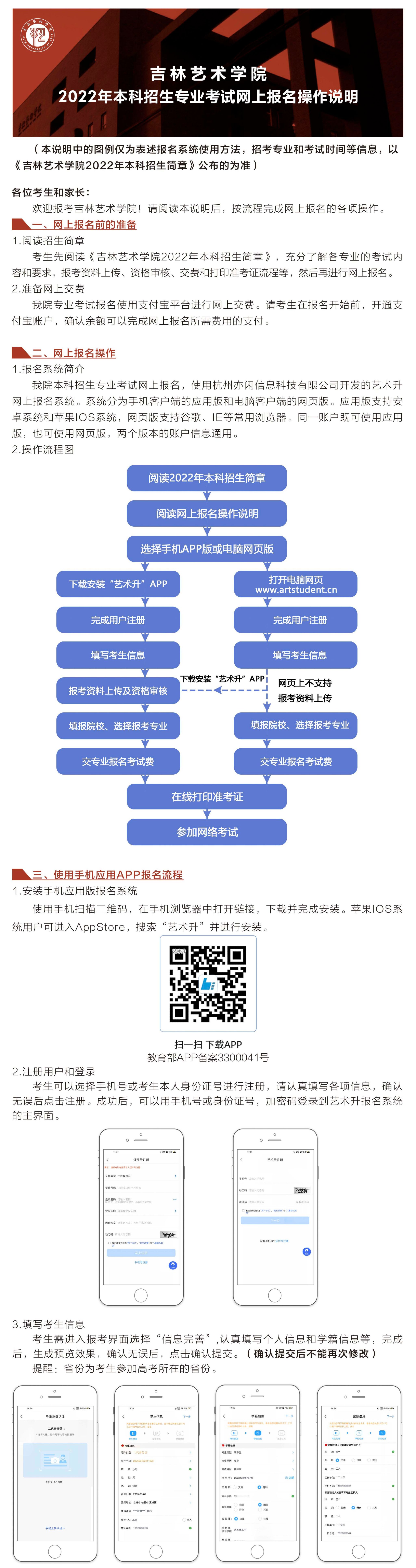 吉林艺术学院2022年本科招生专业考试网上报名操作说明
