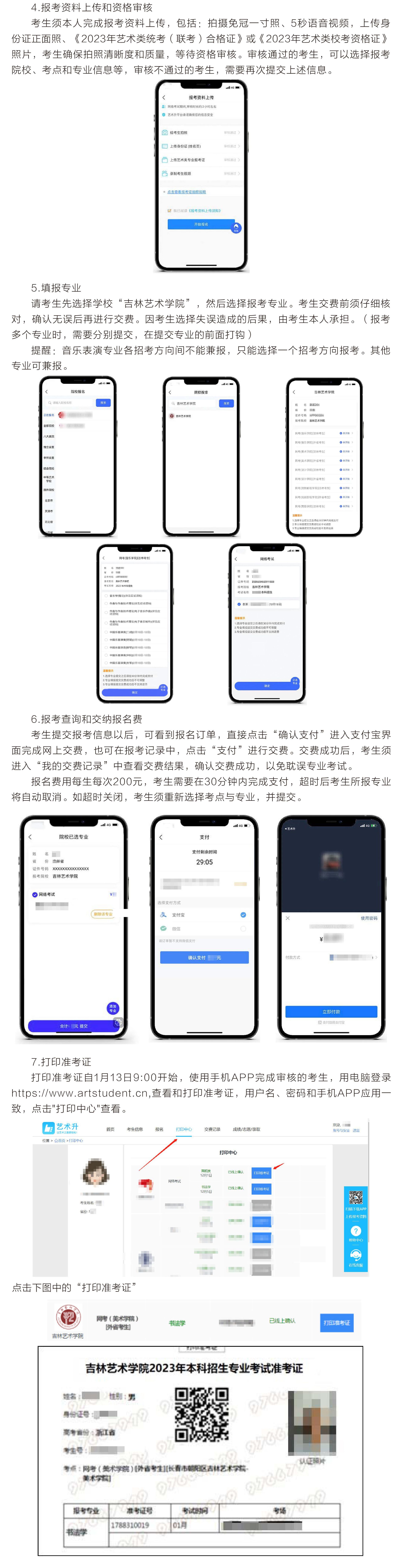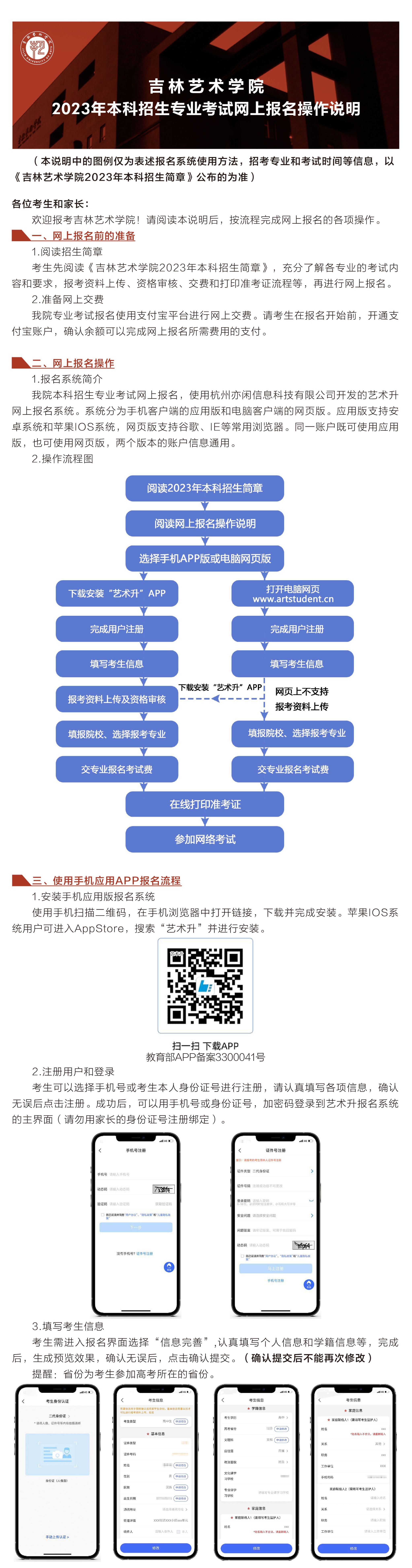 吉林艺术学院2023年本科招生专业考试网上报名操作说明