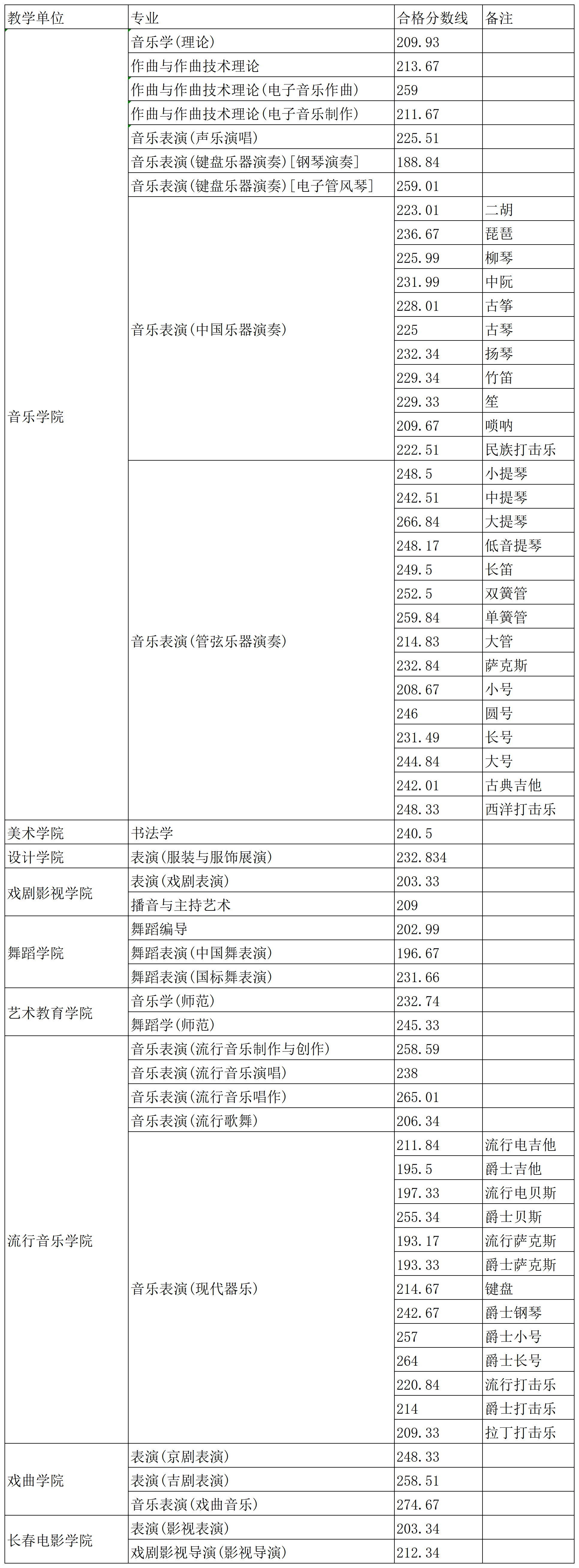 吉林艺术学院2022年本科专业考试合格分数线(吉林)