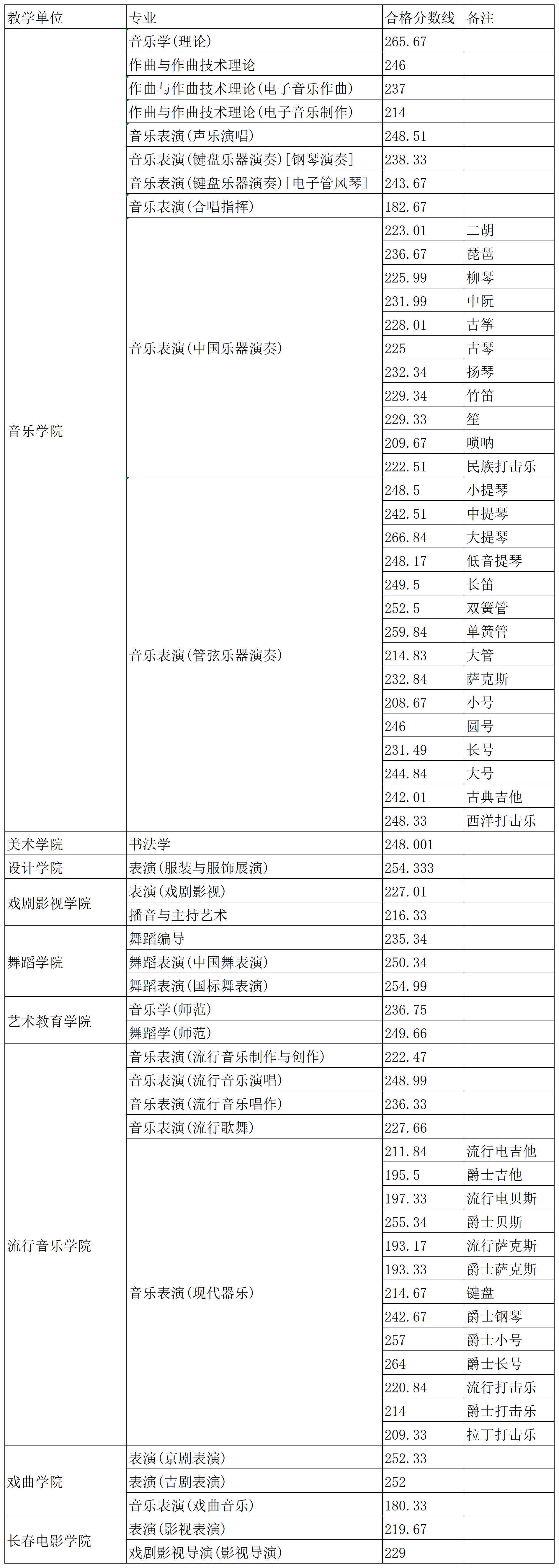 吉林艺术学院2022年本科专业考试合格分数线(外省)