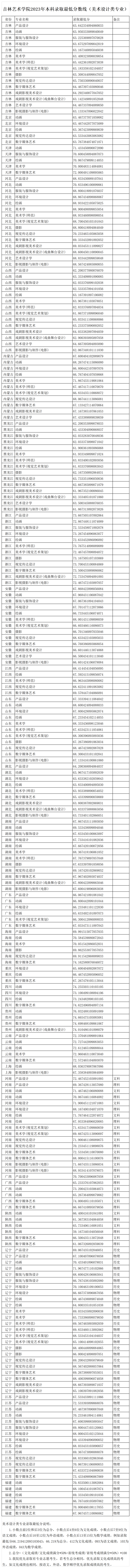 吉林艺术学院2023年本科录取最低分数线(美术设计类专业)