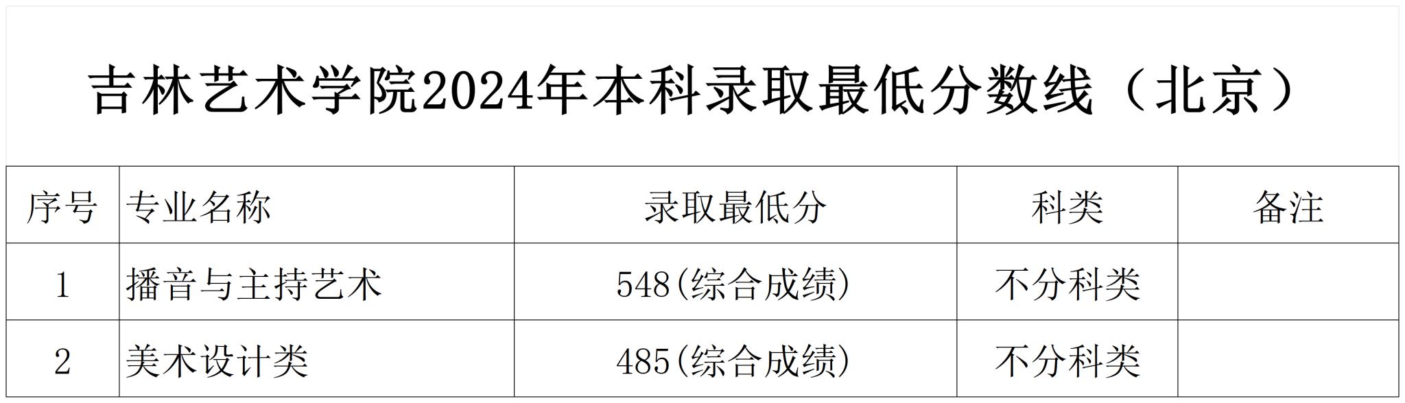 吉林艺术学院2024年本科录取最低分数线(北京)
