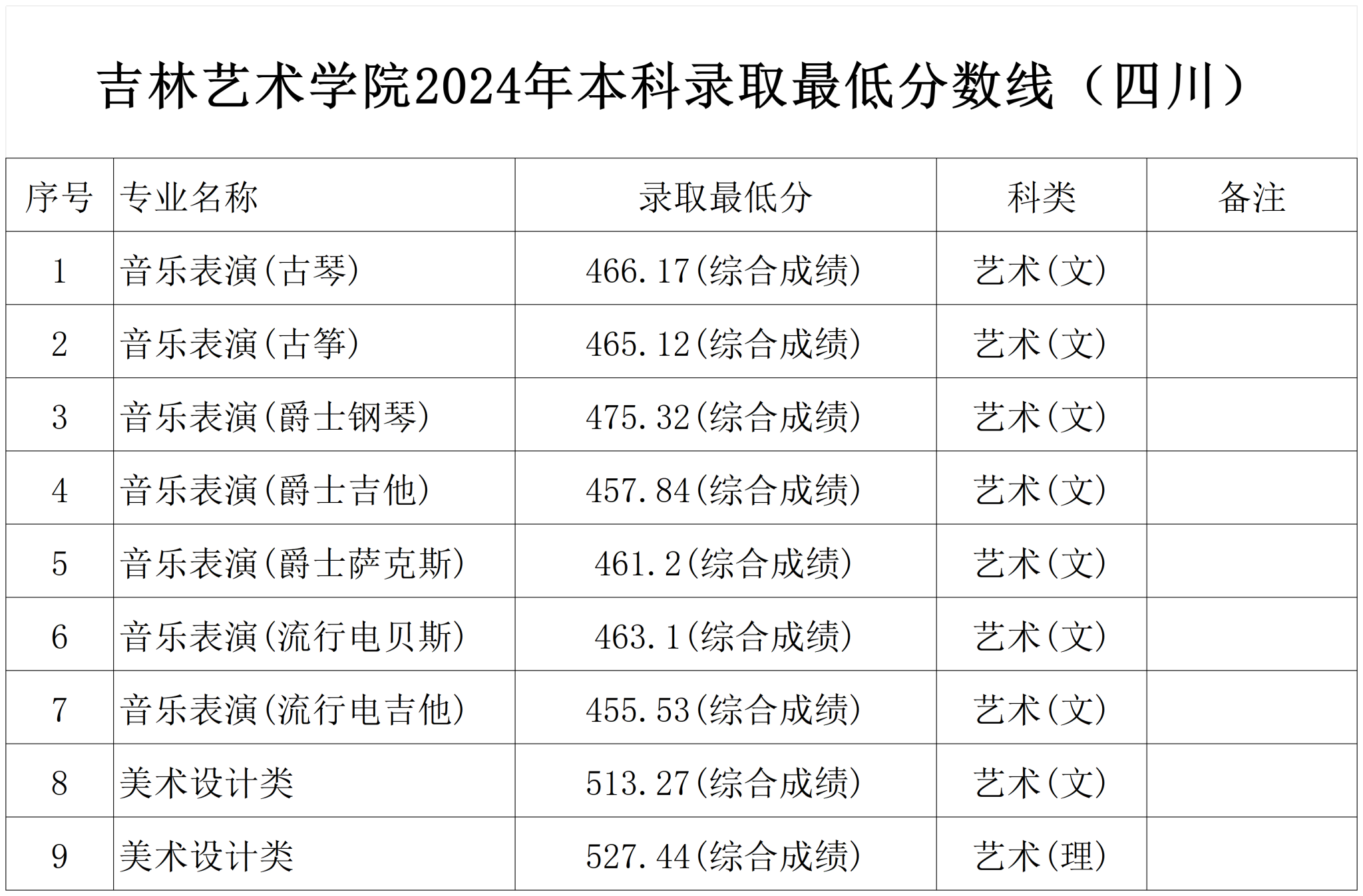 吉林艺术学院2024年本科录取最低分数线(四川)