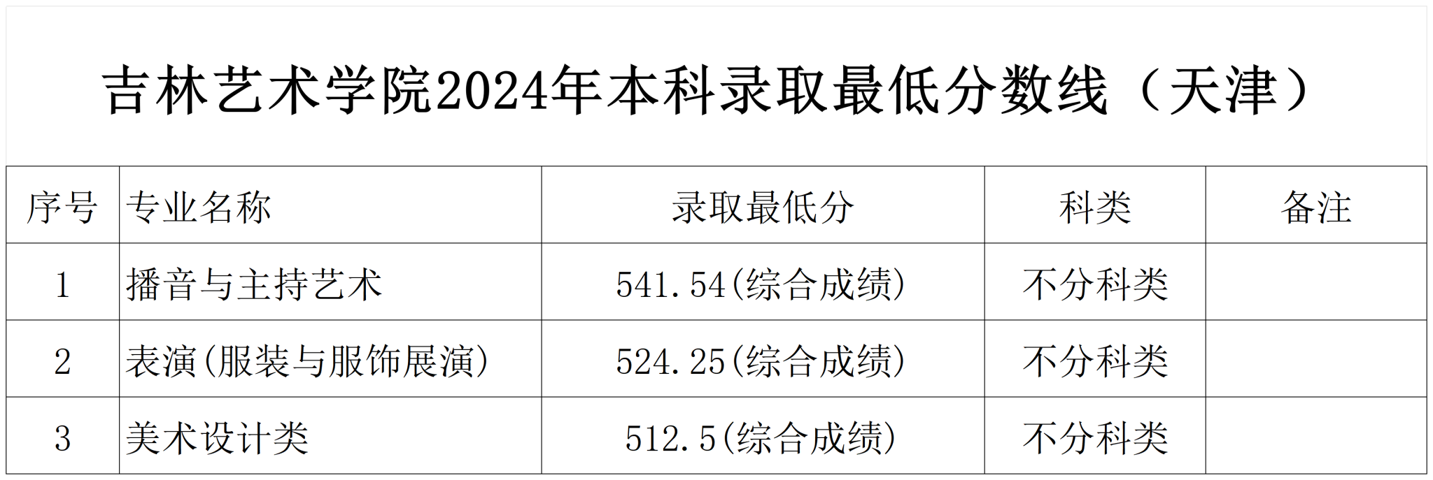 吉林艺术学院2024年本科录取最低分数线(天津)