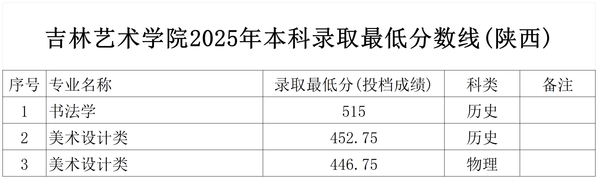 吉林艺术学院2025年本科录取最低分数线(陕西)