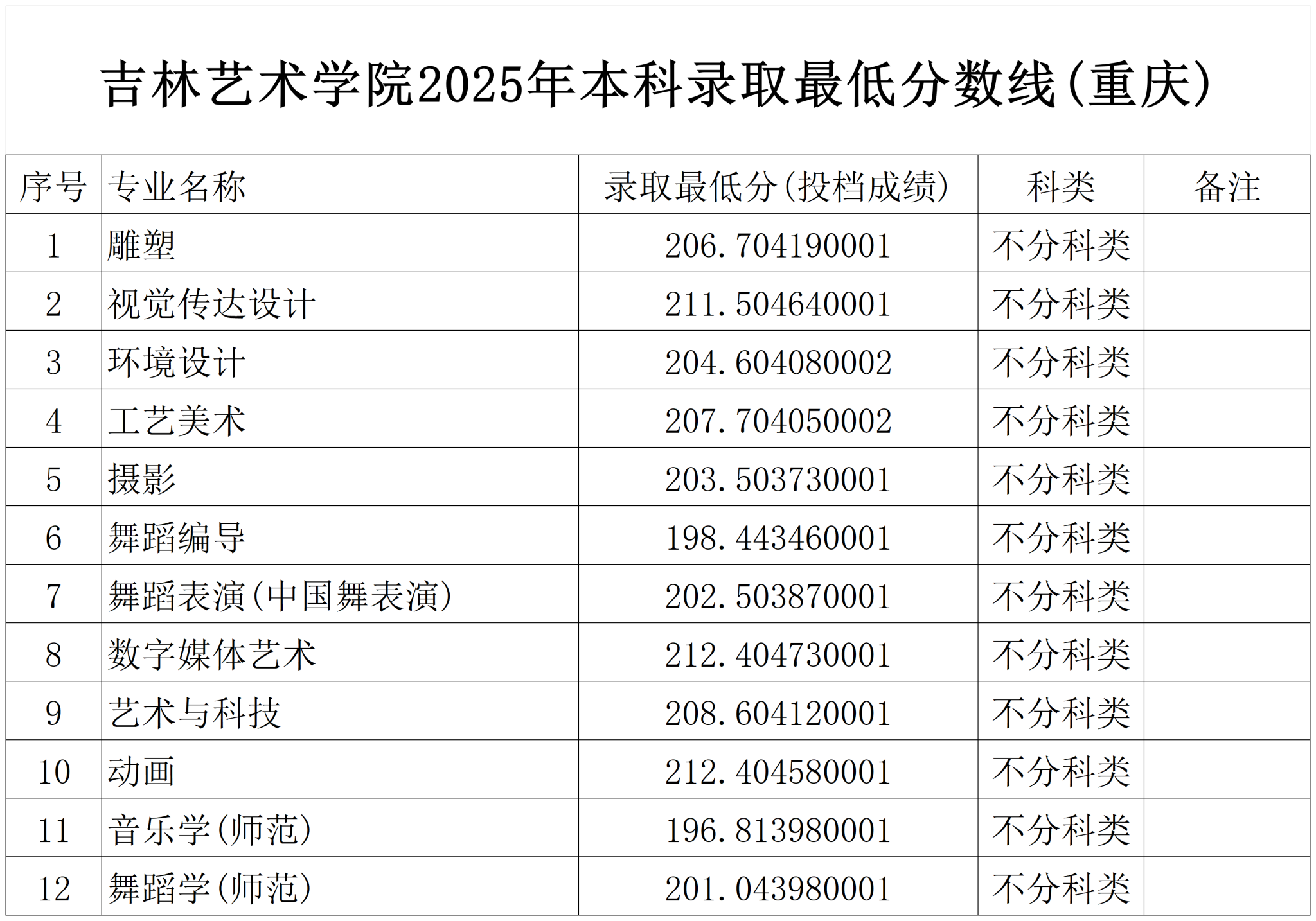 吉林艺术学院2025年本科录取最低分数线(重庆)