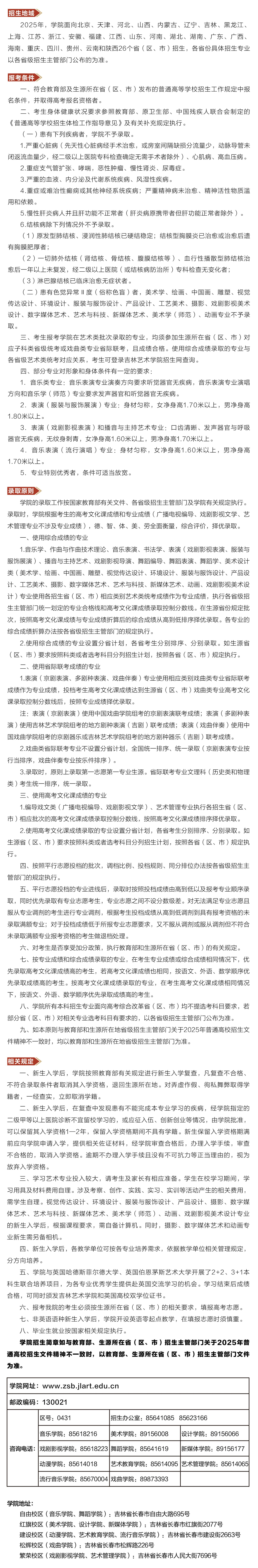 吉林艺术学院2025年本科招生简章