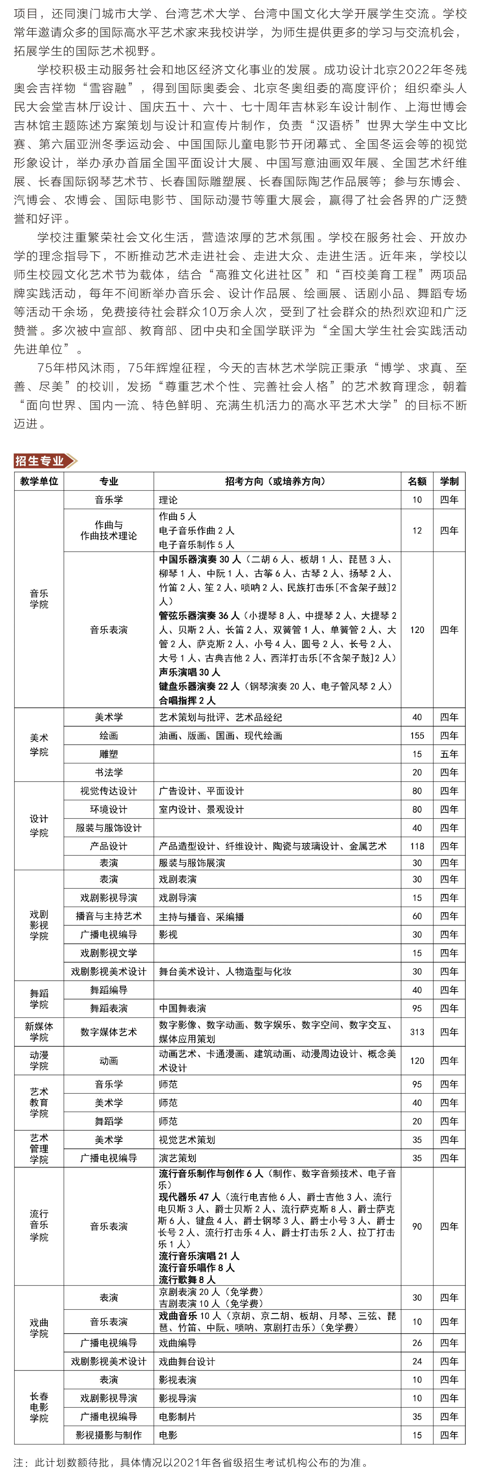 吉林艺术学院2021年本科招生简章