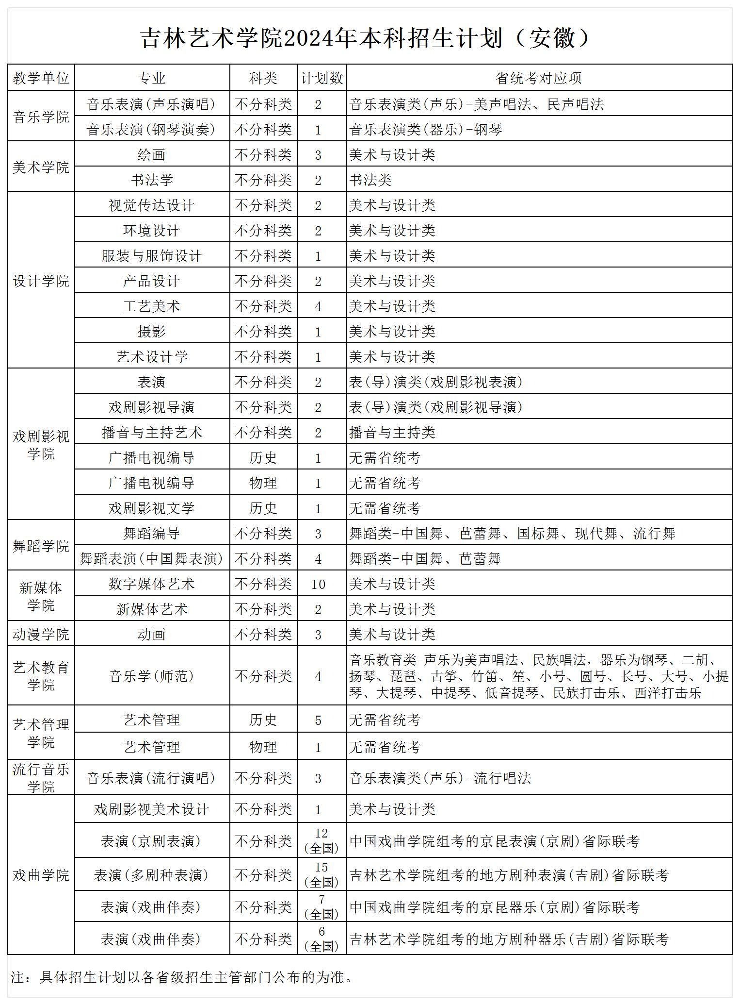 2024年本科招生计划(安徽)