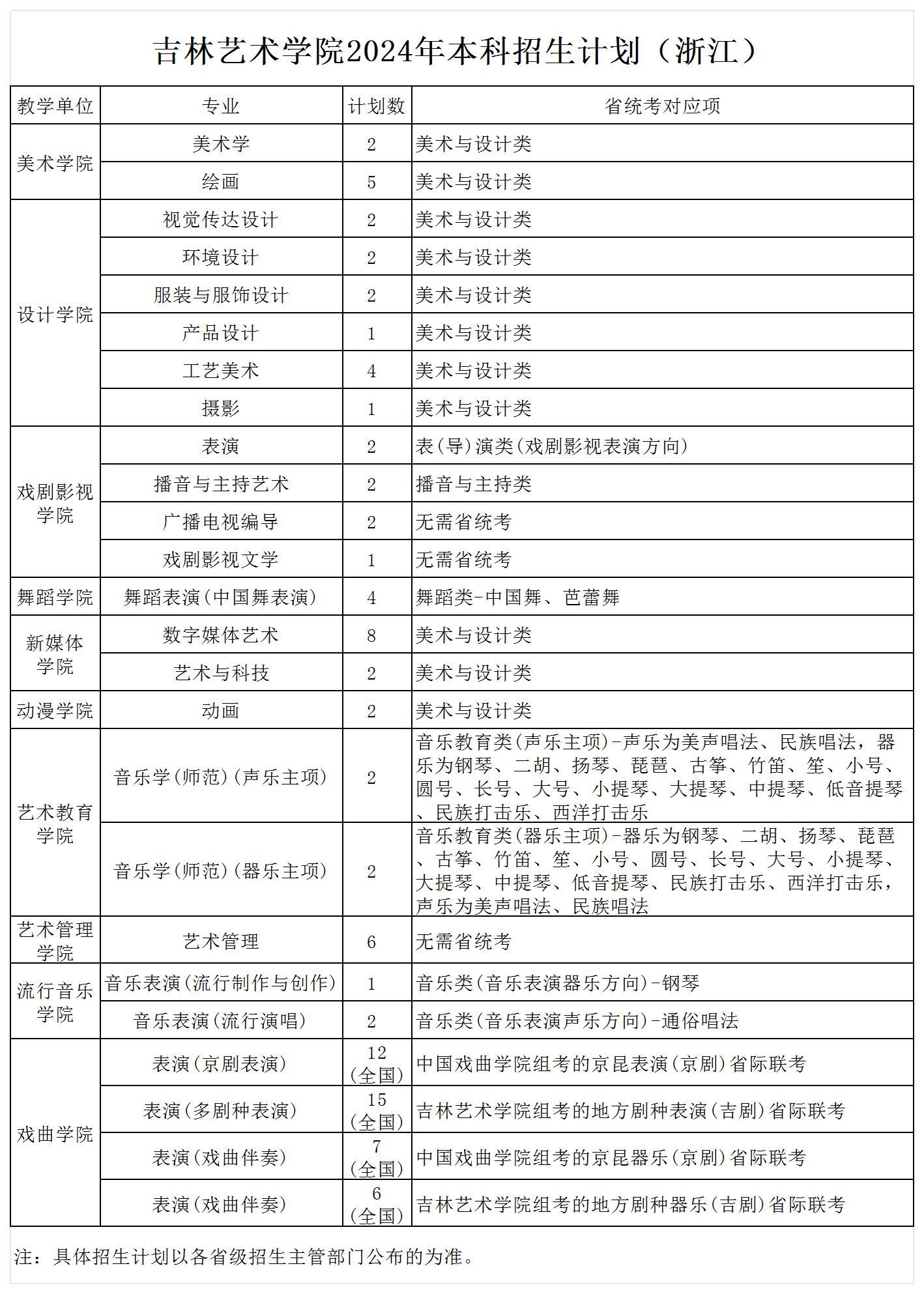 2024年本科招生计划(浙江)