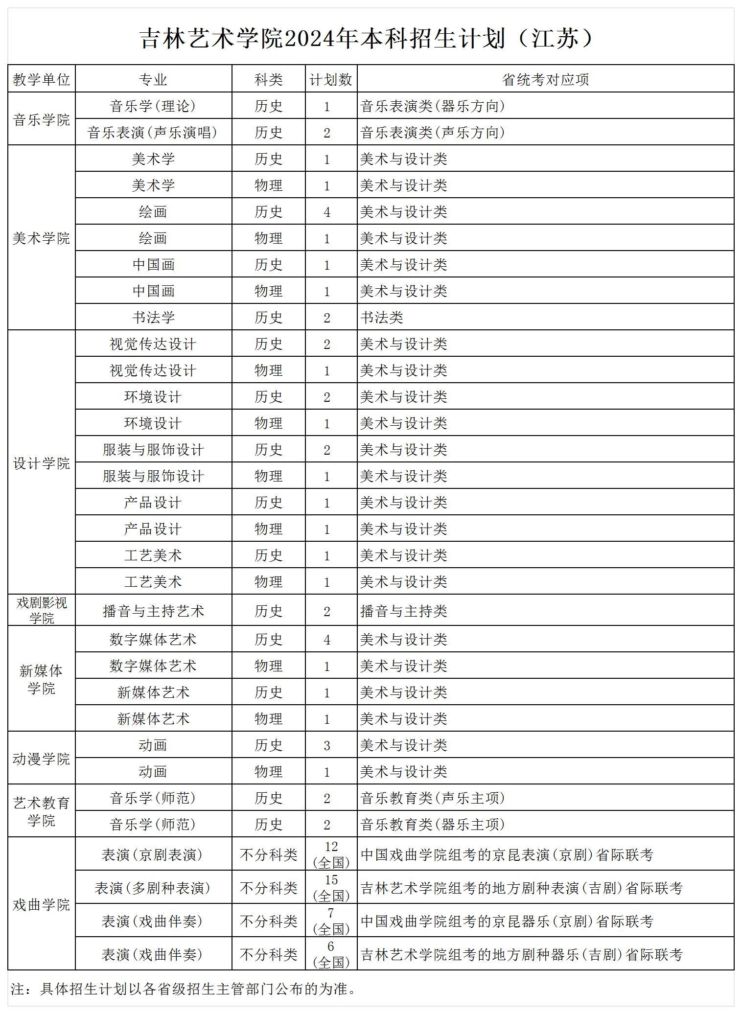 2024年本科招生计划(江苏)