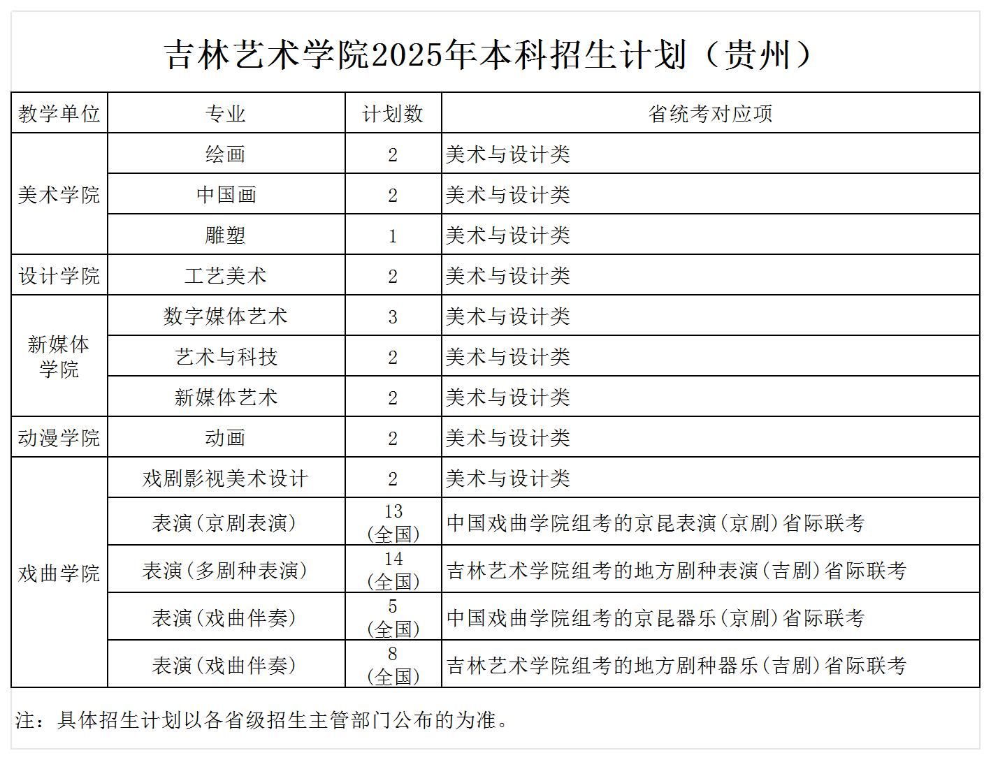 2025年本科招生计划(贵州)