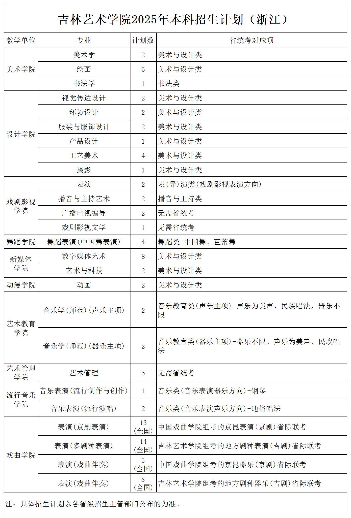 2025年本科招生计划(浙江)